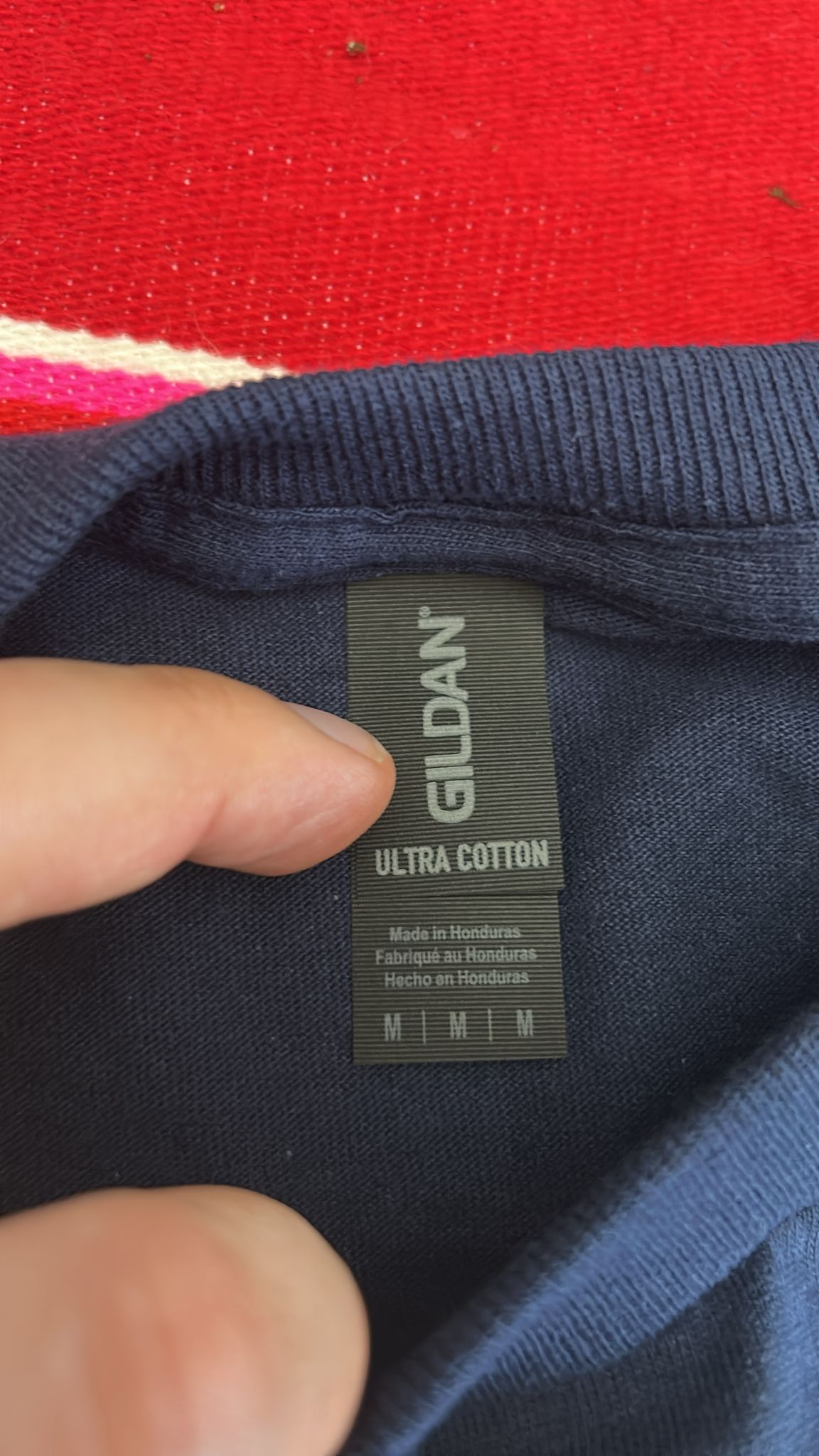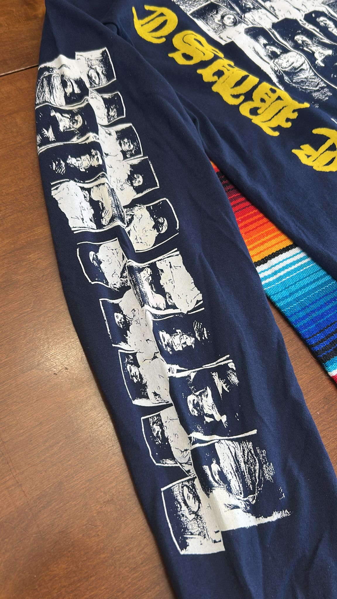 3 sided, 2 color, screen printed long sleeve shirt on navy blue. All sizes in stock.