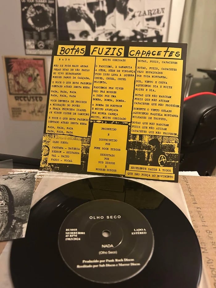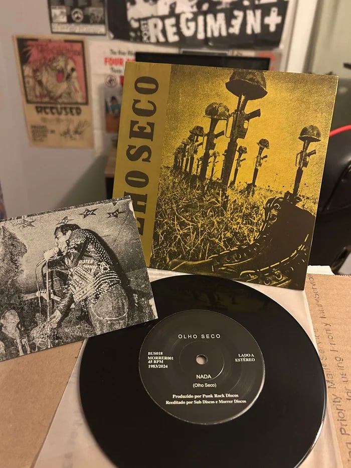Beyond his role as Olho Seco’s frontman, Fábio Sampaio played a decisive role in shaping Brazilian punk. His store, Punk Rock Discos, opened in 1979, became an essential meeting point for São Paulo’s punk scene, facilitating the exchange of ideas and musical influences. Through it, Fábio popularized foreign bands like Discharge, as well as Swedish and Finnish hardcore, influences that helped shape the raw and aggressive identity of local hardcore. In this way, Olho Seco not only helped define Brazilian punk but was also instrumental in its expansion and international recognition.